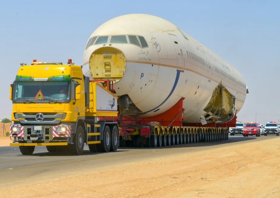 Trzy kadłuby Boeing 777, sześć skrzydeł samolotów i urządzenia lotnicze zostały przetransportowane przez zespół CEVA Almajdouie Logistics z lotniska w Dżudda do Riyadh Boulevard w Rijadzie. Trasę o łącznej długości 1 250 km, przebiegającą przez miasta i wioski, konwój pokonał w ciągu 14 dni. Ze względu na wymiary ładunku, ok. 70 m × 6 m × 8 m, do jego przewozu zespół CEVA Almajdouie Logistics musiał wykorzystać zestaw specjalistycznych naczep, tak aby zapewnić właściwy rozkład masy i bezpieczeństwo w ruchu drogowym. Trzy kadłuby samolotów, z których każdy ważył ok. 120 ton, zostały załadowane na płaskie 78-osiowe naczepy hydrauliczne. Natomiast transport skrzydeł samolotów zrealizowano przy użyciu 15 specjalnie rozsuwanych naczep niskopodwoziowych. Zadaniem zaangażowanych w projekt inżynierów było precyzyjne obliczenie konfiguracji naczep, tak aby równomiernie rozłożyć ciężar ładunków na osiach i tym samym ochronić infrastrukturę drogową przed uszkodzeniem. Kluczowe znaczenie dla powodzenia całej operacji miało odpowiednie przygotowanie i precyzyjne zaplanowanie trasy oraz harmonogramów przejazdu konwoju, co wymagało ścisłej współpracy z lokalnymi władzami. Szczególnym wyzwaniem okazała się być organizacja przejazdu naczep z trzema kadłubami samolotów przez miasta i wioski. Zespół specjalnie wybrał drogi o niskim natężeniu ruchu, tak aby zminimalizować koszty przygotowań infrastruktury drogowej do takiego transportu, a jednocześnie ograniczyć możliwe zakłócenia i zwiększyć bezpieczeństwo całej operacji. Było to tym bardziej ważne, że bezkolizyjny przejazd konwoju wiązał się z koniecznością tymczasowego wyłączenia ponad 120 linii energetycznych, biegnących wzdłuż trasy. Dzięki wsparciu Ministerstwa Transportu i Saudi Electric udało się do minimum skrócić przerwy w dostawach prądu oraz zapewnić bezpieczny przejazd.