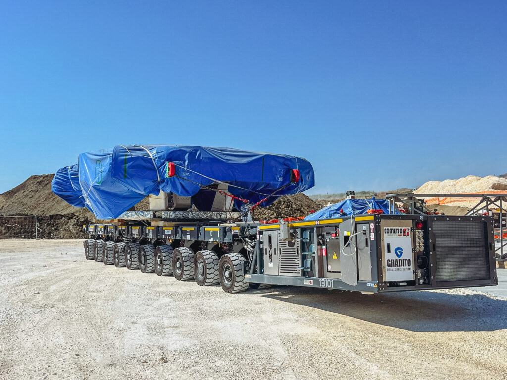 Wiosną ubiegłego roku firma Cometto dostarczyła zupełnie nową konfigurację SPMT do swojego nowego klienta, firmy Gradito Oleodinamica na Sycylii. Firma ta znana jest ze swoich wyjątkowych kompetencji w zakresie podnoszenia i transportu bardzo ciężkich ładunków, usług technicznych oraz wsparcia dla budownictwa.