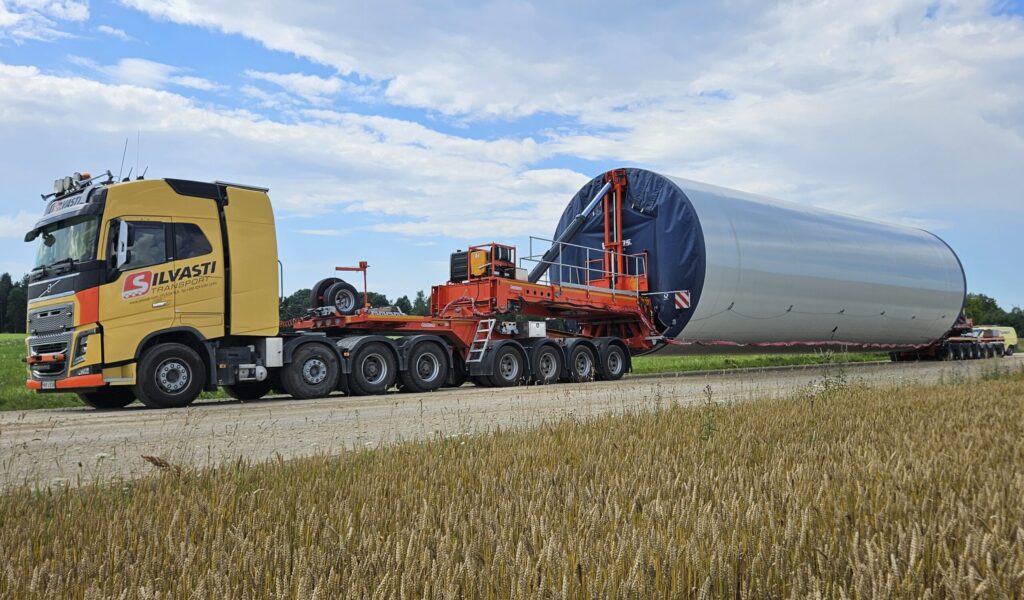 „Na pierwszy rzut oka różnice w stosunku do poprzedniego modelu wydają się niewielkie,” mówi Ville Silvasti. „Ale to właśnie te precyzyjne, konstrukcyjne zmiany robią ogromną różnicę. Nowa konstrukcja zapewnia wyższą stabilność i bardziej przewidywalne prowadzenie. Nasi kierowcy natychmiast poczuli, że naczepa jest intuicyjna, bo sposób obsługi pozostał znajomy.” Silvasti regularnie testuje różne typy i marki naczep, jednak ostatecznie wybiera rozwiązania Nooteboom. „Ponownie przetestowaliśmy konstrukcję i stabilność,” wyjaśnia CEO. „Podstawowa koncepcja Nooteboom jest inteligentna, solidna i przemyślana. Wprowadzając model MWT‑XXL, firma dokładnie zrealizowała te ulepszenia, na które czekaliśmy od dłuższego czasu, szczególnie w kwestii stabilności tylnego wózka.” Co więcej, początkowo rozważane zastosowanie zawieszenia hydraulicznego zostało szybko odrzucone na rzecz ulepszonego system zawieszenia pneumatycznego: „W połączeniu ze wzmocnieniami konstrukcyjnymi zawieszenie pneumatyczne działa znakomicie. Nie zauważyliśmy żadnych ograniczeń.” Latem ubiegłego roku firma Silvasti wykorzystywała MWT‑XXL w projekcie na Litwie, przewożąc segmenty wież o średnicy zewnętrznej 6,3 m, niemal maksymalnej dopuszczalnej. „I tu również, zero zastrzeżeń. To mówi samo za siebie.” Relacja między Silvasti a Nooteboom trwa od wielu lat. „Rozumiemy się praktycznie bez słów,” mówi CEO. Opinie operacyjne przekazywane przez Silvasti są regularnie wykorzystywane przez Nooteboom do dalszego udoskonalania produktów,również modelu MWT‑XXL. To połączenie praktyki i rozwoju technologii sprawia, że obie firmy wyznaczają kierunki rozwoju transportu ponadnormatywnego.